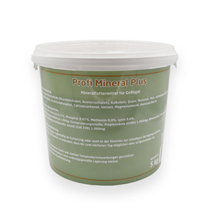 The mineral supply is crucial to maintaining the various functions in the body, so an adequate supply through the feed is of great importance. Körnerpick Profi Mineral Plus should be used when the chickens are fed with non-mineralized grain mixtures or have an increased need, e.g. during growth, during moulting or to improve the quality of the eggshell during the laying period. Körnerpick Profi Mineral Plus therefore contains high-quality calcium compounds from oyster shells and mussel shells, which can ensure the supply for bone structure, feathering and eggshell formation.